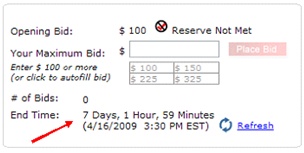 Regardless of the number of bids entered during the last (5) minutes, each bid will reset the Auction clock back to "5 Minutes, 0 Seconds" until no bids are received within the final 5 minute period, and the item's clock expires.